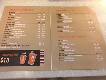 這是在自助調理吧台拿的外帶單,上面是咖啡和飲料部分的價錢