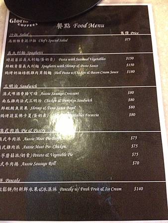 點完餐才發現,收銀台前有一張黑色的Menu上面有餐點(有義大利麵和三明治)