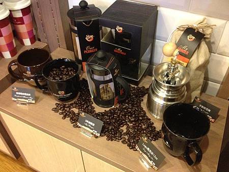 或許是主打品牌行銷吧!馬克杯、咖啡器具與咖啡豆的價錢都跟星巴克差不多