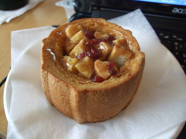 內餡部分,麵包丁浸過焦糖布丁液,甜而不膩